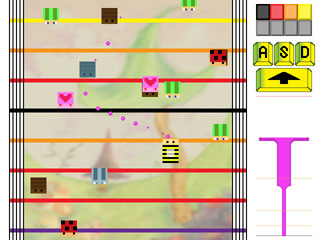 Chu-Chiby Patrick Alexander November 2006 DOWNLOAD version 1.02 (10.9 MB) NEW! Download PRESS MATERIALS (180kb) Chu-Chi is Patrick's first ever game, made with the well-known Game Maker by Mark Overmars. It's a scrolling shooter NO WAIT DON'T STOP READING!! It's a music-based, looping shooter-'em-up, full of colour and happiness and a retarded bee! That's him to the right there, in that humourous promotional image. Chu-Chi is unique and baffling -- sort of half-toy, half-game. BUT ALL FUN. It's easy to play but difficult to beat. Can you get the highest ranking...? Patrick why did you make a music game in Game Maker, that's crazy. It's world-first crazy, is what it is. Who is Chu-Chi suitable for, audience-wise, Patrick tell me now.
